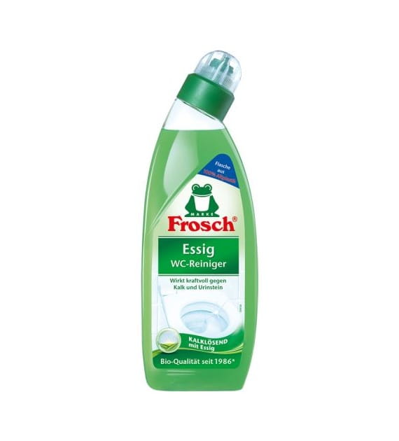 Frosch WC Gel zawiera naturalne składniki aktywne, takie jak kwas mlekowy i ekstrakt z aloesu, które dbają o czystość toalety bez uszkadzania powierzchni. Produkt jest wolny od chloru i fosforanów, co czyni go przyjaznym dla środowiska.